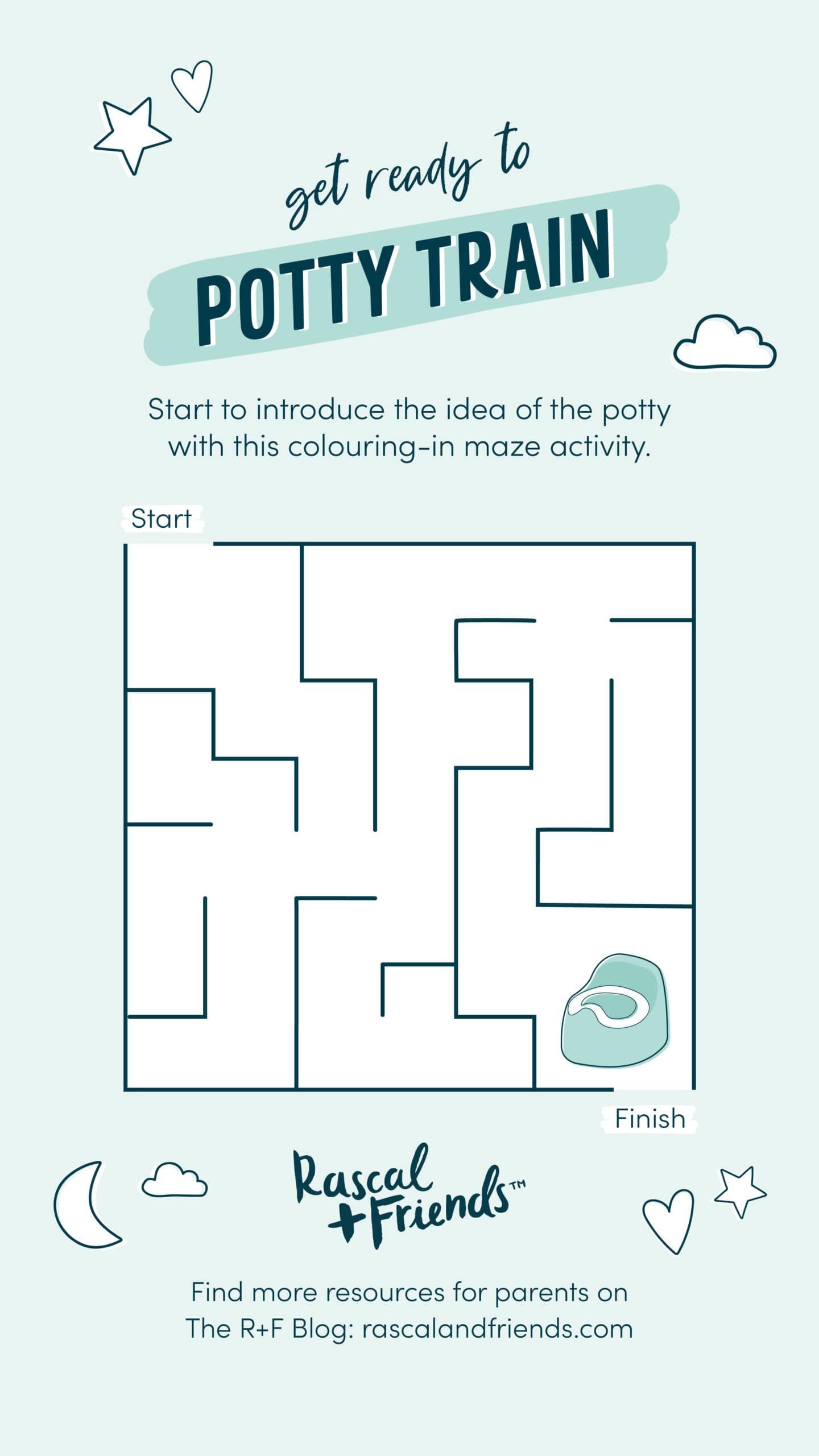 Introduce the idea of a pottyEven before using the potty, there are a number of fun ways you can introduce it. Such as reading children’s books, teaching your little one what it looks like, or using craft activities like this colouring-in maze. Find more fun activities on our News + Resources hub.