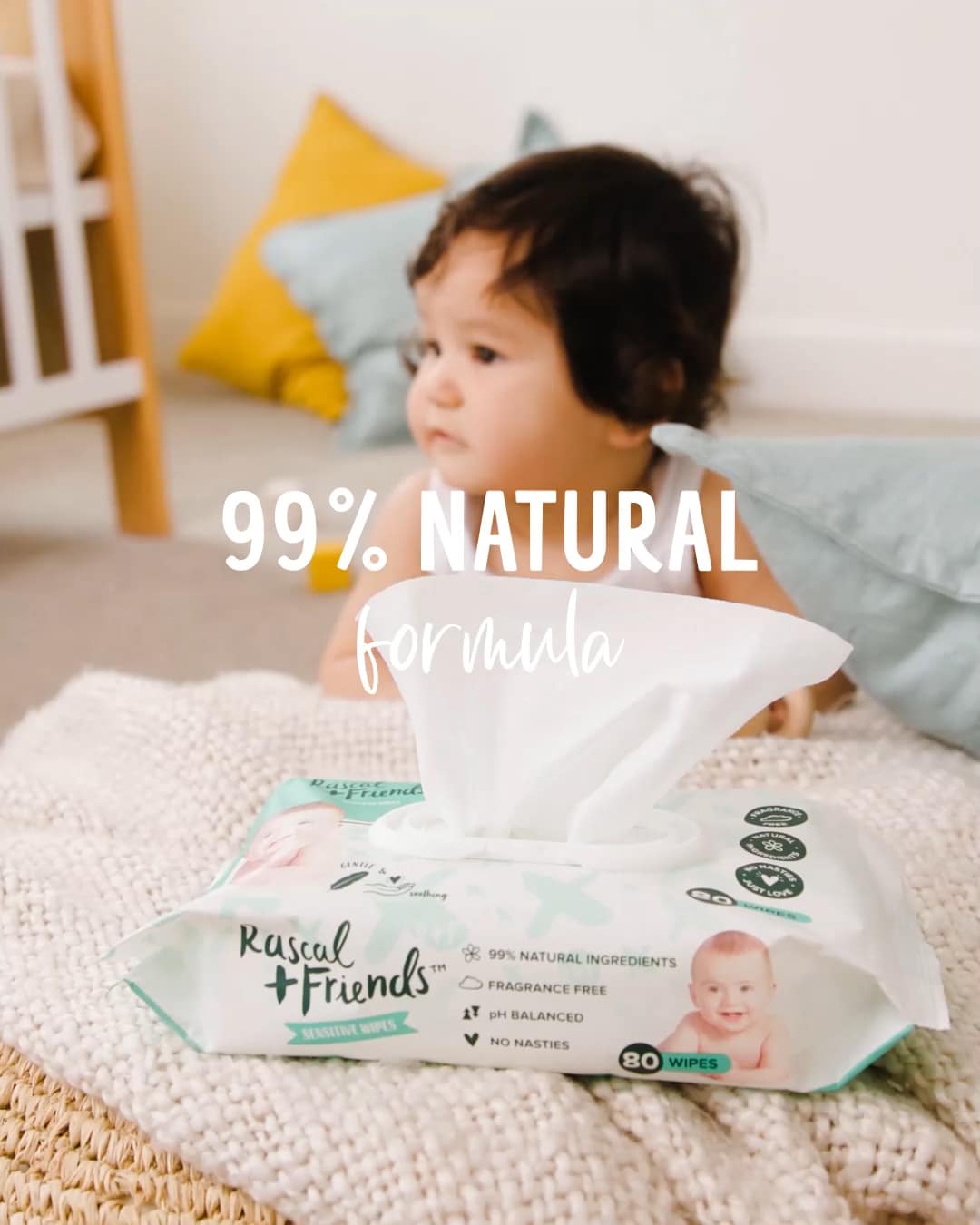 Our best wipe for sensitive skin, Rascal + Friends Sensitive Wipes are designed for a gentle & effective clean.